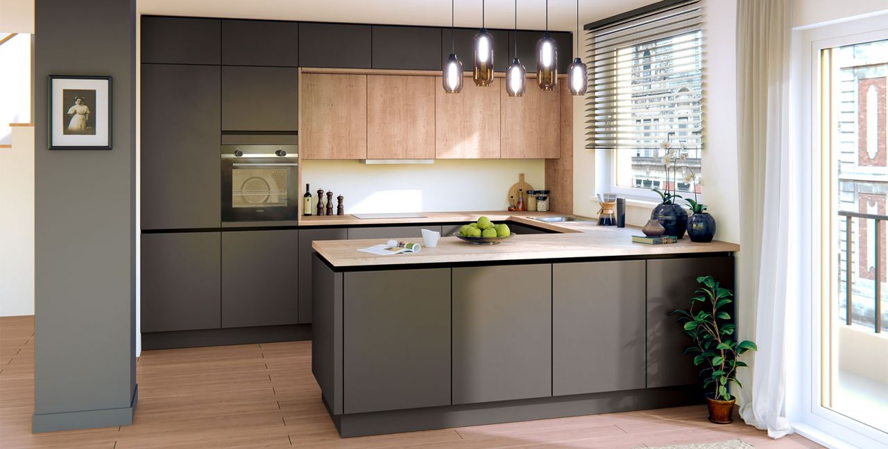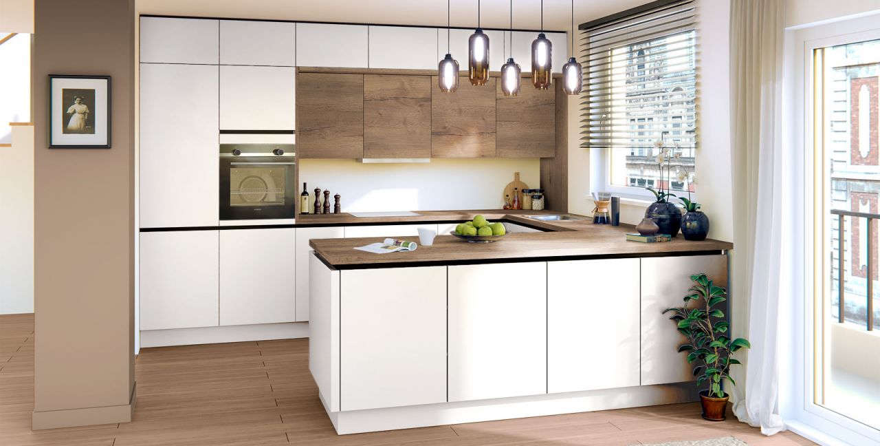Inclusief RVS-inbouwoven Siemens HB510ABR1 Energieklasse A, keramische kookplaat Siemens ET645HN17E, platte afzuigkap Elica ELITE 14 60-D Energieklasse D, koelkast Laurus LKG88E Energieklasse E, volledig geïntegreerde vaatwasmachine Laurus LSV60-4 Energieklasse E, inbouw-designspoelbak Elleci Logik 300, XL-kasten, onderkast met uittrekinterieur.